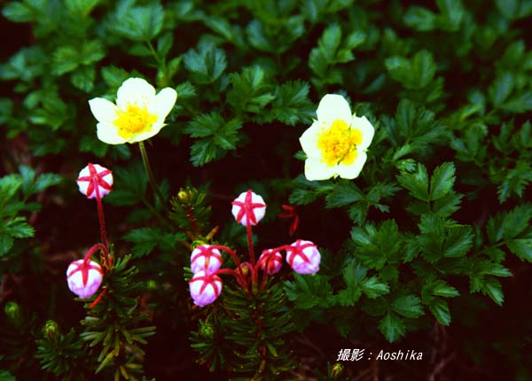 北海道、大雪山にて、つつじ科のエゾツガザクラと、