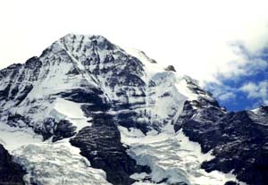 登山電車から見るアイガーの北壁、標高3970mやはりアイガーの北壁を見るのには、ユングラウに向かい左側の席が良く見えます30年前に日本人初登頂に成功している。